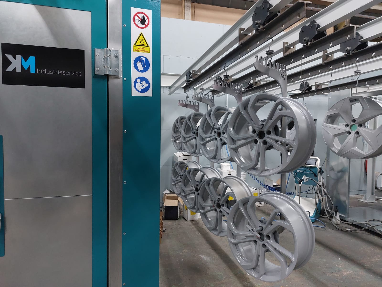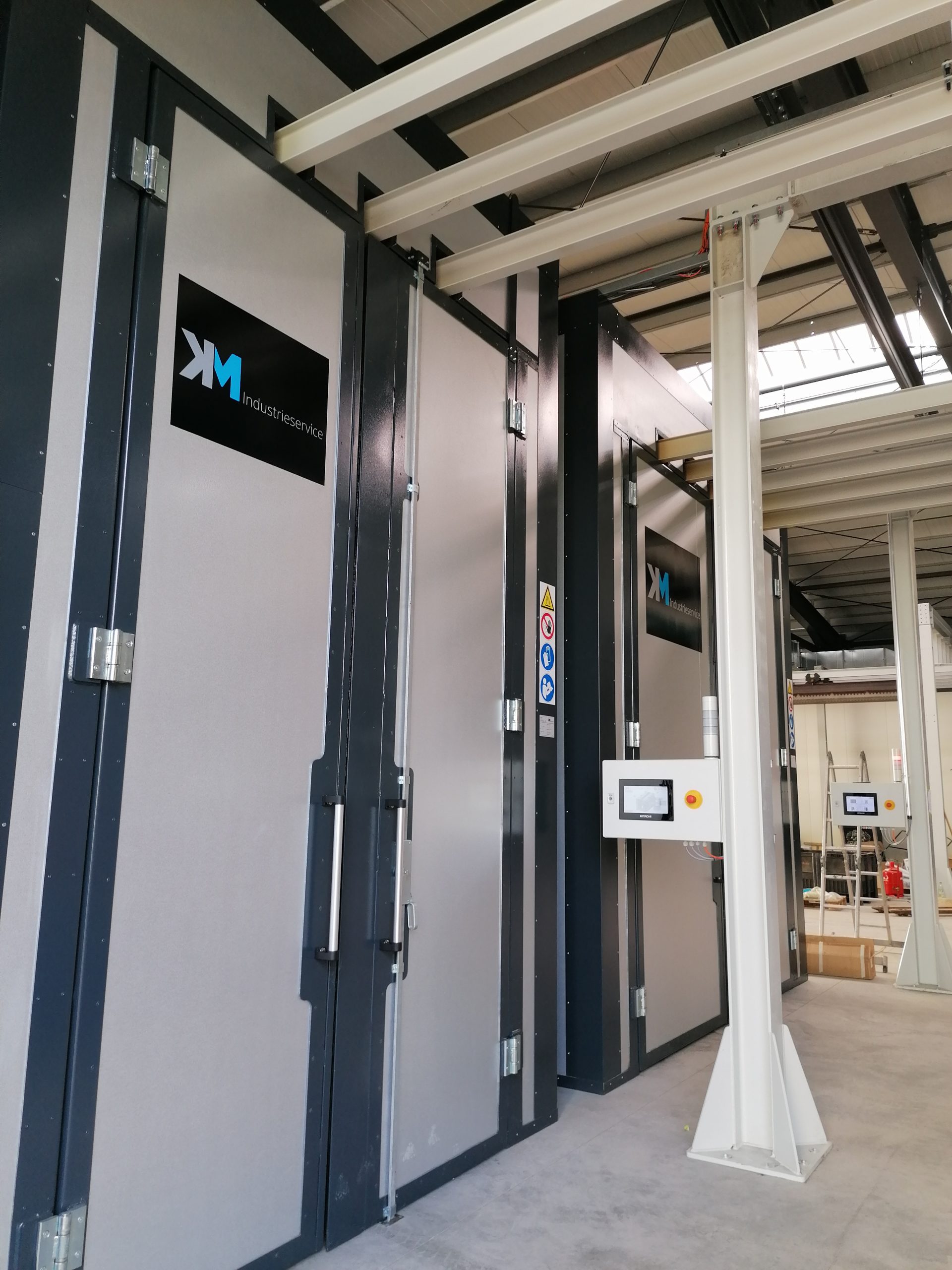Der Lacktrockner von KM Industrieservice ist die ideale Anlage zum Trocknen von Nasslacken. Im Gegensatz zu unseren anderen Anlagen, die für Pulverlacke konzipiert sind, bietet dieser Trockner spezielle Funktionen für Nasslacke. Mit seiner innovativen Zu- und Abluftsteuerung und dem Automatikbetrieb ermöglicht der Lacktrockner eine effiziente und präzise Trocknung. Sie können bis zu 10 verschiedene Programme einstellen, um die Trocknung genau an die Spezifikationen Ihres Lacks anzupassen. Eine Signallampe und eine Hupe signalisieren den Betriebszustand, während das 10-Zoll-Touchdisplay für eine einfache und intuitive Bedienung sorgt.